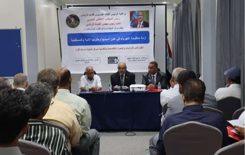نظّم قطاع البحوث والدراسات بمركز البحوث ودعم القرار للمجلس الانتقالي الجنوبي، اليوم الثلاثاء ، في العاصمة عدن، حلقة نقاشية بعنوان "أزمة منظومة الكهرباء في عدن الأسباب والحلول الآنية".