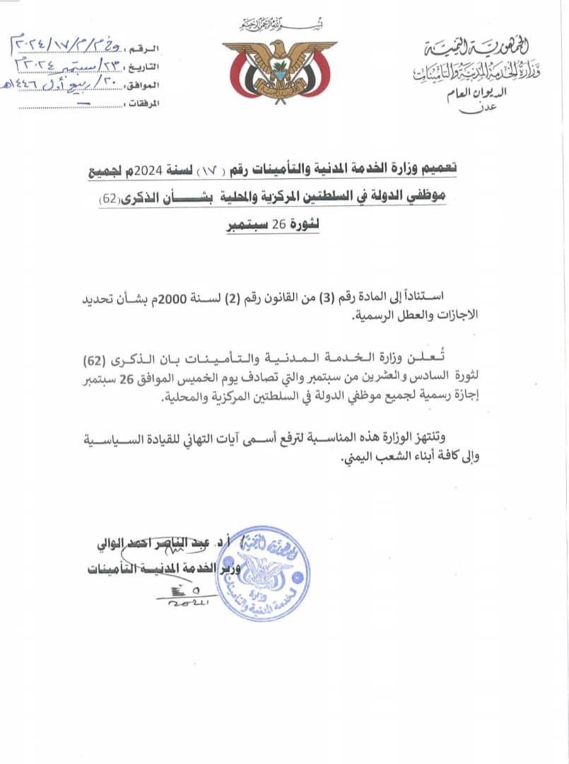 وزارة الخدمة المدنية تعلن إجازة رسمية الخميس القادم