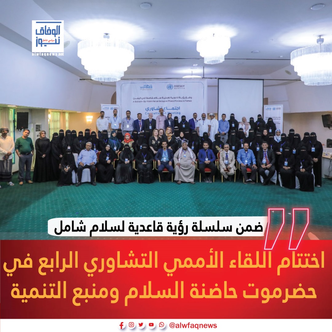 ضمن سلسلة رؤية قاعدية لسلام شامل: اختتام اللقاء الأممي التشاوري الرابع في حضرموت حاضنة السلام ومنبع التنمية