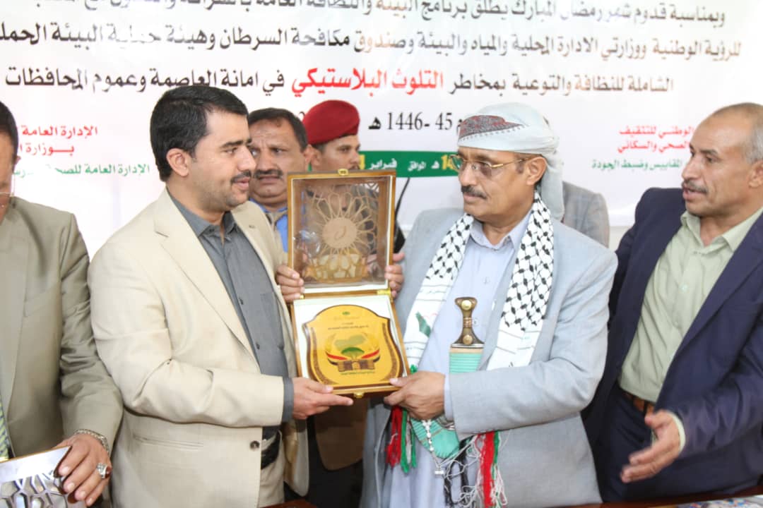 للموسم الثالث على التوالي كرم عضو المجلس السياسي الاعلى الشيخ سلطان السامعي مستشفى جامعة العلوم والتكنولوجيا بشهادة ودرع افضل بيئة صحية وجامعية يمنية اهتماما بالبيئة والنظافة العامة للعام 2023م صادرة من برنامج