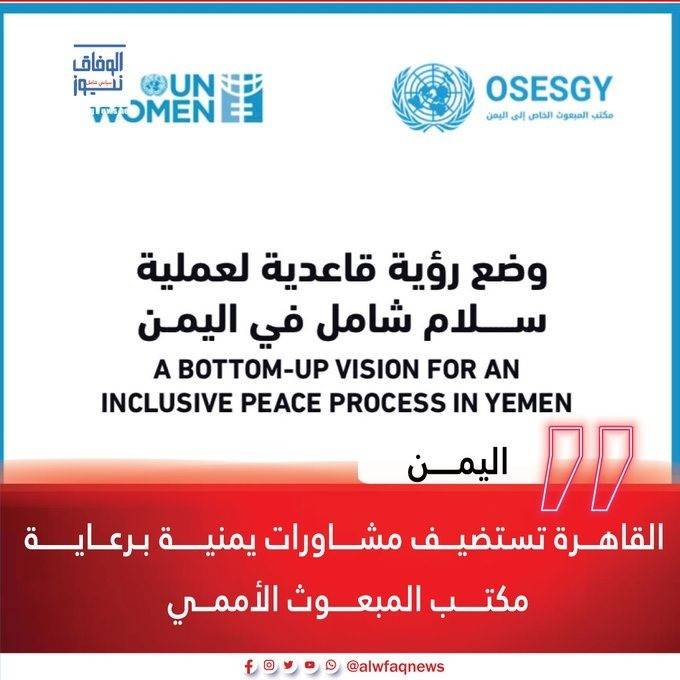 القاهرة انطلقت اليوم في القاهرة جلسات مشاورات بناء السلام الشامل، التي ينفذها مكتب المبعوث الاممي الى اليمن، حيث عقد اجتماعا تشاوريا مع 60 مشاركا ومشاركة من ممثلي المجتمع المدني وأمنيين وخبراء وباحثين وشخصيات