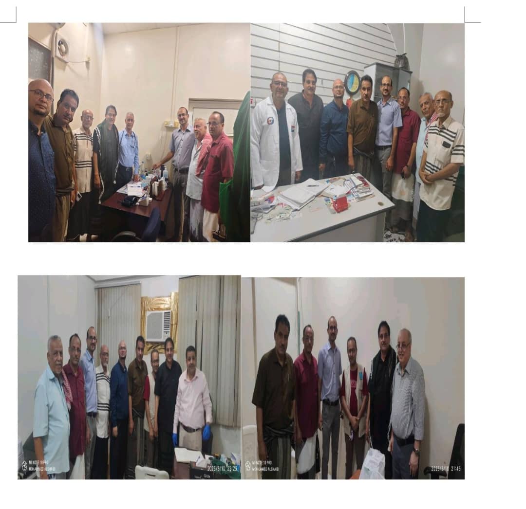 عدن - الجمعة 7 مارس 2025زار رئيس جمعية الضالع - عدن، الطيار فضل سالم الشعيبي، العيادة الطبية المجانية لطب الباطنة والقلب، التابعة للجمعية، والتي يشرف عليها الأستاذ الدكتور أحمد البيشي إستشاري القلب والباطنة في
