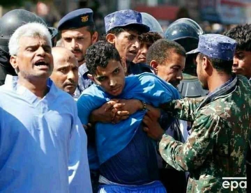 بجسد مشلول ؛ ساقت مليشيات الحوثي الطفل عبدالعزيز الاسود (17 عاماً) الى ساحة ميدان التحرير بصنعاء صباح اليوم السبت لتنفذ فيه و8 آخرين من ابناء تهامة حكم الاعدام.