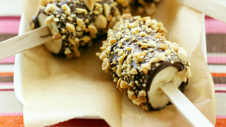 الموز المثلج بالشيكولاتة وصفة شهية جدا عندما يوجد لديك بعض المكونات البسيطة في مطبخك وتحتاج إلي تقديم حلوي سريعة من مطبخك . حيث أنه من المعتاد أن يحدث ذلك في نهاية كل شهر . لكن، في مطبخي أستطيع أن أقدم لك وصفة