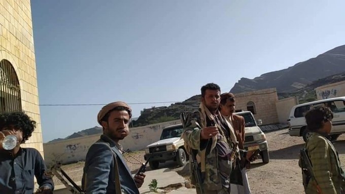 وبث الحوثيون صوراً لمقاتليهم وقياداتهم الميدانية من المجمع الحكومي في كولة رحبة مركز