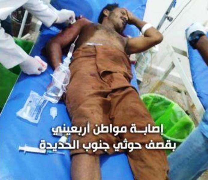 أفاد مصدر محلي بمحافظة الحديدة ، اليوم السبت ، عن إصابة مواطن ، في قصف شنته مليشيات الحوثي الإنقلابية ، على مزارع المواطنين جنوب الحديدة غربي البلاد .