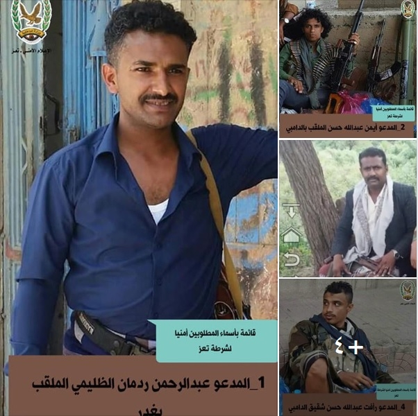 وضمت القائمة الصادرة عن شرطة تعز كلًا من ( عبدالرحمن ردمان