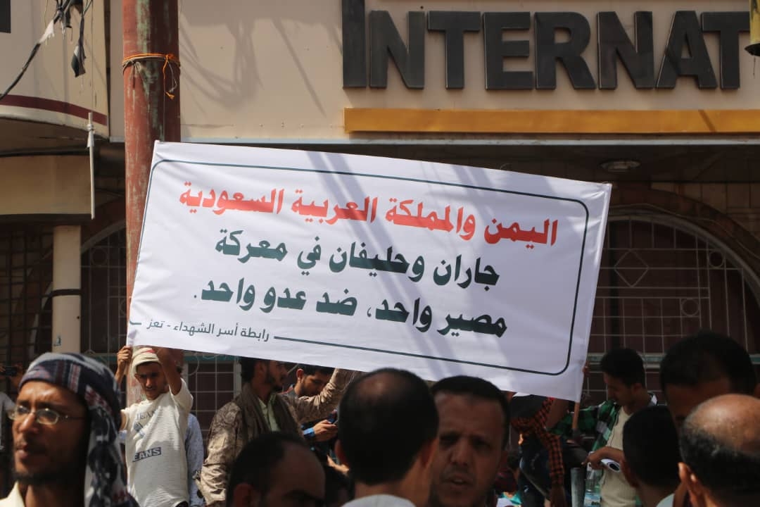 شهدت محافظة تعز اليوم مسيرتين لعناصر حزب الاصلاح حملت فيها لافتات تشيد بالسعودية وتتعهد بعدم الاضرار بها.المسيرات التي تم الدعوة لها تحت لافتة الجرحى في مدينة تعز والتربة، كان لافتا فيها الاشارة الى السعودية