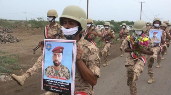 في موكب جنائزي مهيب شيعت المقاومة الوطنية اليوم الاحد 5 يوليو 2020م في مدينة المخا محافظة تعز البطل الشهيد النقيب عصام مطهر الجمرة