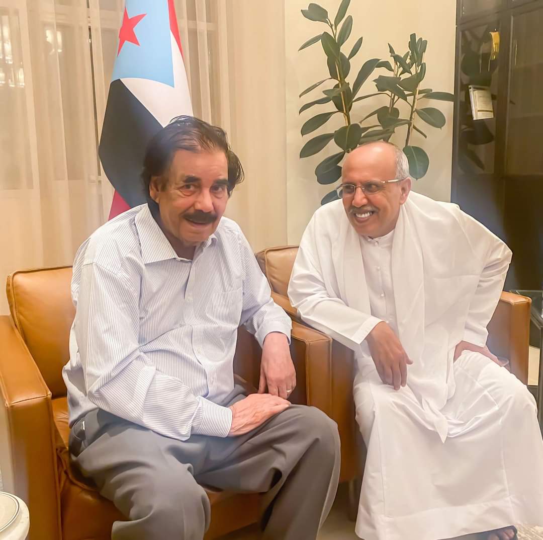 ظهر الرئيس الجنوبي علي سالم البيض في صورة جديدة مع قيادي بارز بالمجلس الانتقالي الجنوبي.