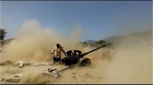 شنت مدفعية المقاومة الجنوبية اليوم الاثنين قصف مدفعي على مواقع المليشيات الحوثية في جبهة ثرة بمحافظة أبين