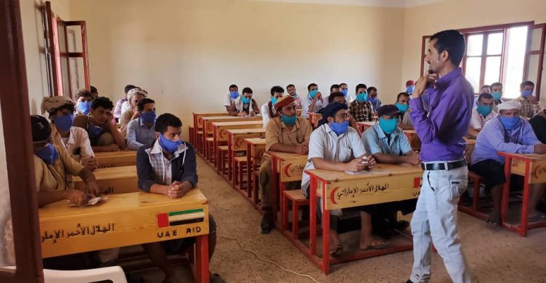 نظمت إدارة الخدمات الطبية لقوات ألوية العمالقة، دورة تدريبية لـ80 متدرباً حول الوقاية من فيروس كورونا المستجد ( كوفيد 19) .