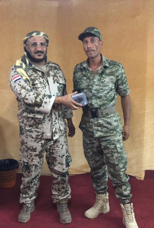 العميد طارق صالح يكرم أحد منتسبي حراس الجمهورية الذي سطر ملحمة بطولية في منطقة الجاح متابعات:كرم العميد طارق محمد عبدالله صالح قائد المقاومة الوطنية، اليوم، الجندي عبدالحميد أحمد الهمداني أحد منتسبي حراس