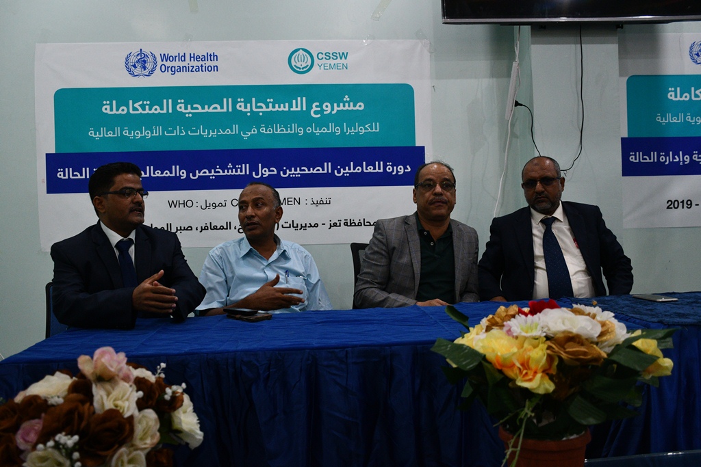 يمن أونلاين -تعزدشن *الدكتور عبد الرحيم السامعي* - مدير مكتب الصحة العامة والسكان بتعز البرنامج التدريبي للعاملين الصحيين في *مشروع الاستجابة الصحية المتكاملة للكوليرا* والبالغ عددهم *(240 )* متدربا ومتدربة ضمن