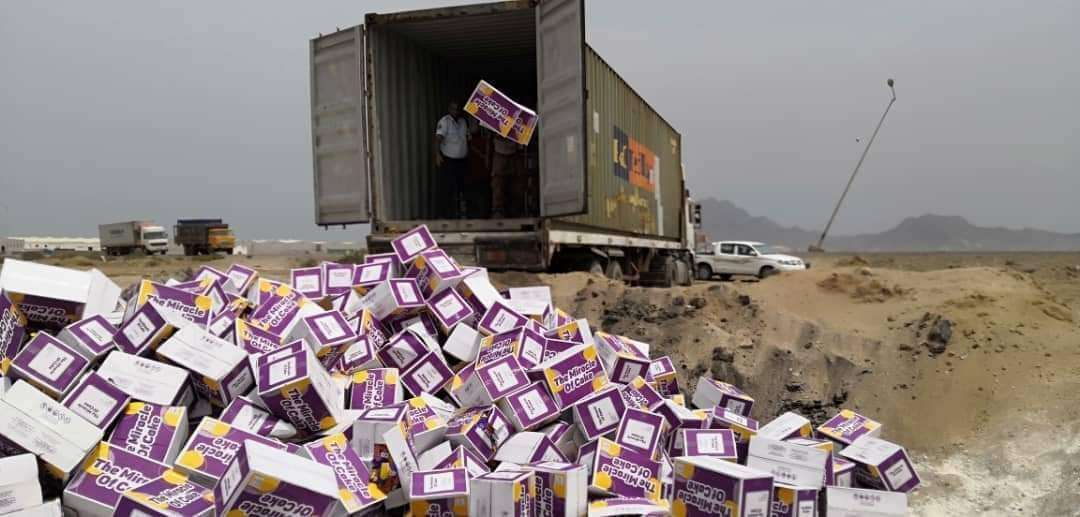 أتلفت هيئة المواصفات والمقاييس وضبط الجودة مع شرطة المنطقة الحرة، يوم الاحد، عبر مكاتبها بميناء الحاويات بالعاصمة عدن حاوية 40 قدم ، تحتوي على نوع بضائع كيك تركية الصنع من ماركة موازيك، عدد الكمية