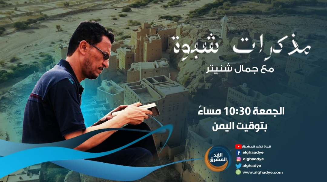 - خاص تطلق قناة الغد المشرق ضمن خارطتها البرامجية الجديدة برنامج بعنوان " مذكرات شبوة " الذي يسلط الضوء على الحياة الاجتماعية والثقافية والسياسية في هذه المحافظة العريقة .البرنامج يتناول ابرز المحطات التي