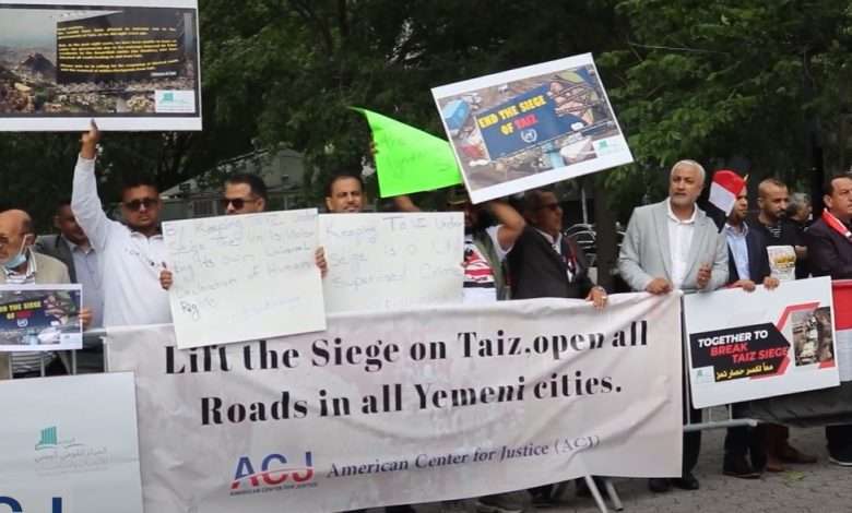 خرج العشرات من أبناء الجالية اليمنية في الولايات المتحدة، اليوم الجمعة، في قفة احتجاجية تم تنظيمها أمام مقر الأمم المتحدة في نيويورك، نددوا خلالها، بالحصار الحوثي المستمر على مدينة تعز.وذكر