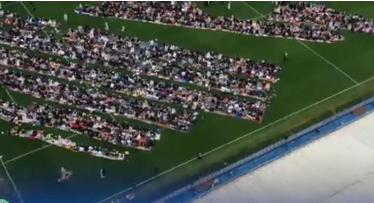 وثقت صورة مشهداً جميلاً لمئات المسلمين وهم يؤدون صلاة العيد اليوم الإثنين، في ملعب لناد بريطاني، في سابقة تحدث لأول مرة بالمملكة المتحدة. و سمح نادي بلاكبيرن روفرز للمصلين المسلمين بأداء صلاة