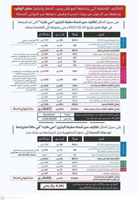 بعد استحواذها على كميات الوقود الواصلة عبر السفن التجارية التي دخلت ميناء الحديدة ، أقرت الميليشيات الحوثية الانقلابية المدعومة من إيران فرض جرعة سعرية على أسعار الوقود في مناطق سيطرتها دون