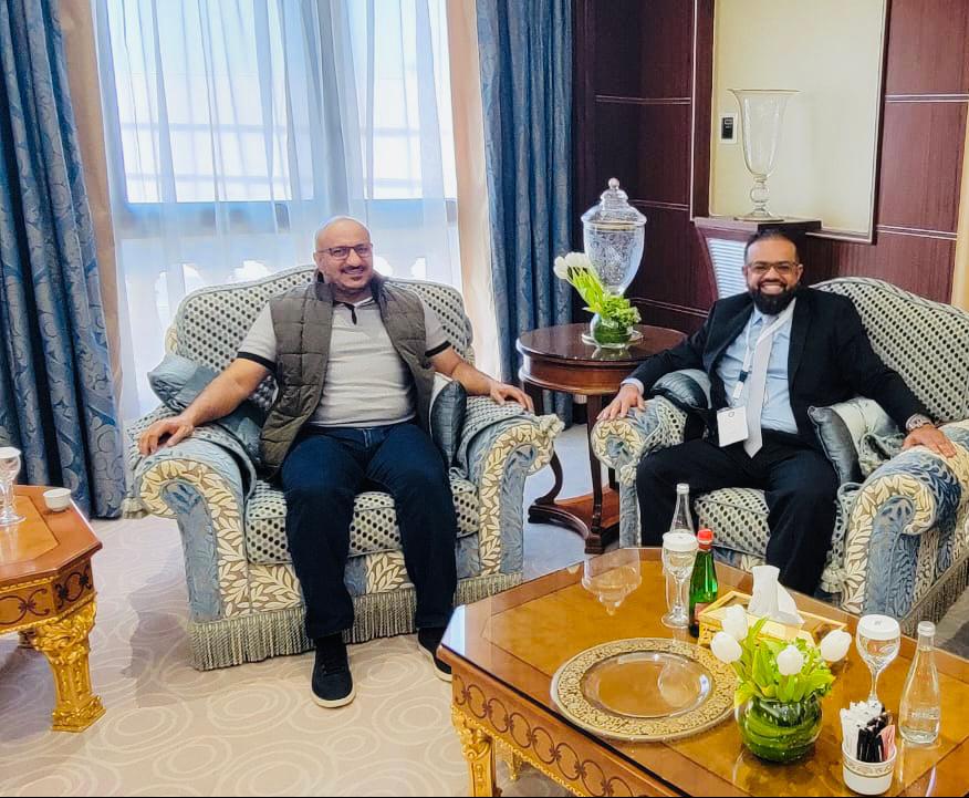 علي هامش المشاورات التقى الشيخ نبيل الجماعي نائب رئيس الجاليه اليمنيه رئيس فرع المؤتمر الشعبي العام - بنيويورك والقائد الوطني طارق محمدعبدالله صالح قائد المقاومة المشتركه بالساحل الغربي وتم في هذا اللقاء التطرق