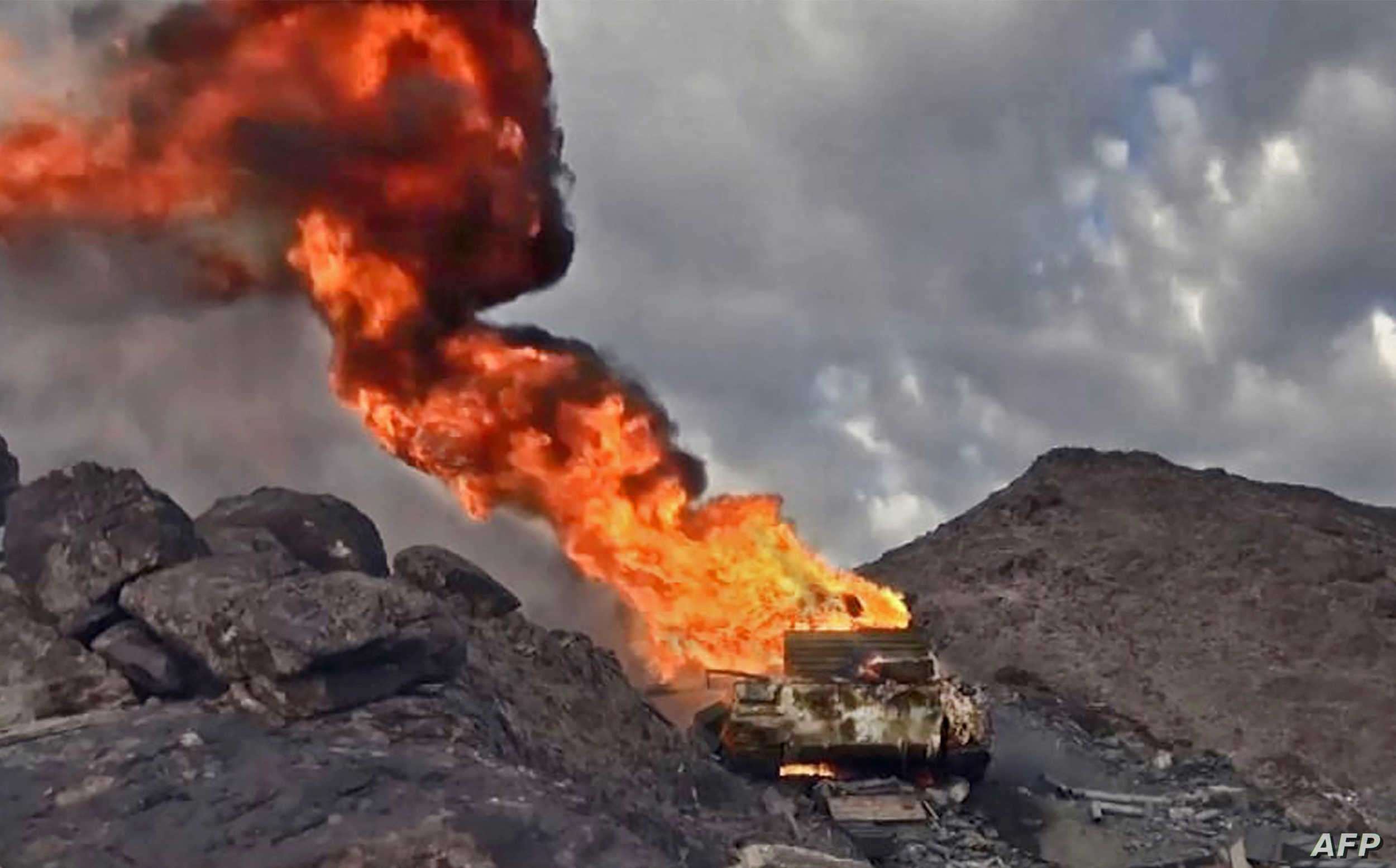 اخبار اليمن :الحوثين يحرقون ناقلة وقود في الجوف