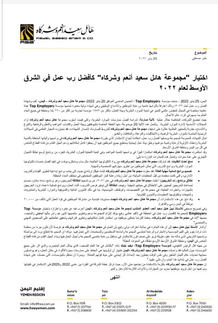 اختيار مجموعة هائل سعيد كأفضل رب عمل في الشرق الأوسط