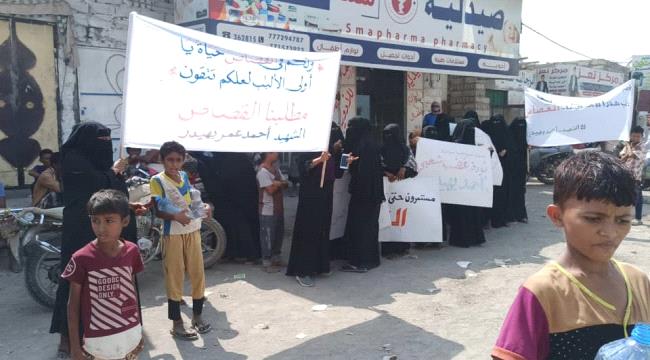 نظمت عشرات النساء والناشطات اليوم السبت وقفه تضامنية أمام منزل اسرة الشهيد البهيدر بجوار الجامع الكبير تنديدا بخروج بعض المتهمين في