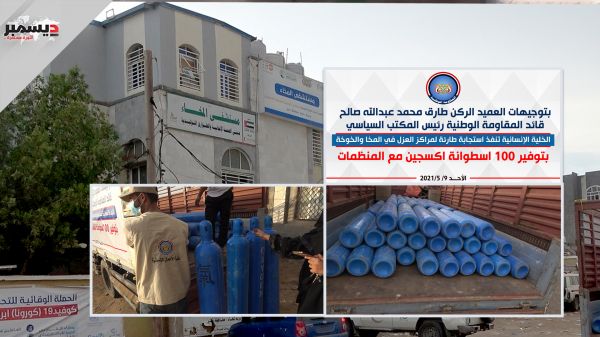 استجاب قائد المقاومة الوطنية ورئيس مكتبها السياسي العميد طارق محمد عبدالله صالح، لمناشدات أطلقها مكتبا الصحة في كل من المخا والخوخة لتوفير اسطوانات أوكسجين لمراكز العزل الصحي، وتغطية العجز في هذا الجانب لمواجهة