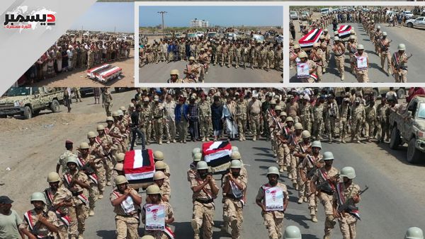 في موكب جنائزي مهيب ،شيعت المقاومة الوطنية، اليوم الخميس، اثنين من أبطالها : الشهيد العقيد عبدربه مطهر ركن بشرية اللواء الرابع حراس الجمهورية، والشهيد المساعد يوسف مياح واللذين ارتقيا في معركة الشعب المقدسة