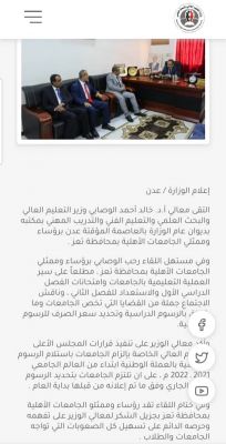 أكد وزير التعليم العالي والبحث العلمي أ.د. خالد الوصابي، موافقته على السعر المعلن من قبل الجامعات بداية العام الجاري، والذي يبلغ 400 ريال مقابل الدولار الواحد، خلال اللقاء الذي جمعه برؤساء الجامعات.جاء ذلك خلال