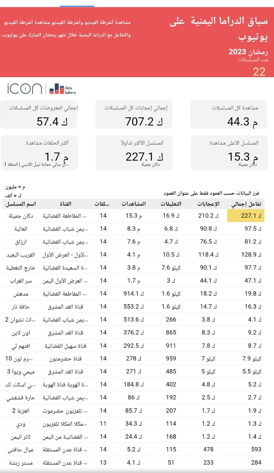 يواصل مسلسل "دكان جميلة" لفت اهتمام الجمهور والمشاهد العربي حيث يتصدر مشاهدات الدراما اليمنية ويعد من أبرز الأعمال الرمضانية العربية والأكثر مشاهدة على يوتيوب؛ إذ جاوزت مشاهدات الحلقات الخمسة عشرة الأولى ١٥