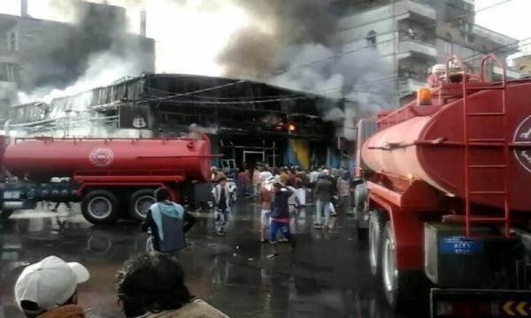 وقالت مصادر ملحلية، أن حريقاً هائلاً اندلع في مخازن الاسفنج ومخازن أخرى مجاورة في منطقة