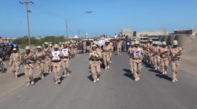 شيعت المقاومة الوطنية، اليوم ، بطلين من أبطالها سفيان صالح ناصر الرعيني وعبدالاله محمد صالح الفقيه اللذين ارتقيا شهيدين في معركة الشعب