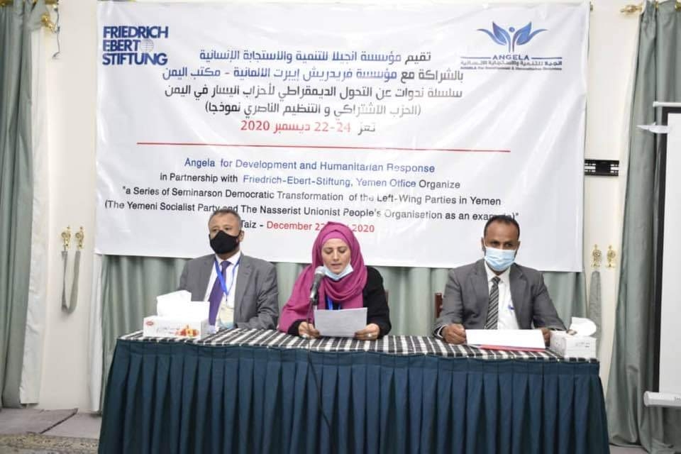 اختتمت مؤسسة انجيلا للتنمية والاستجابة الانسانية بالشراكة مع مؤسسة فريدريش ايبرت الالمانية مكتب اليمن سلسلة ندوات التحول الديمقراطي لأحزاب اليسار في اليمن الحزب الاشتراكي والتنظيم