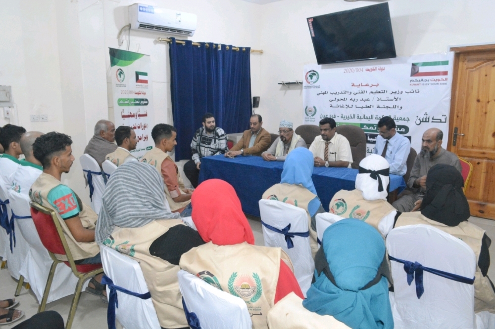 بتمويل من الجمعية الكويتية للإغاثة نفذت جمعية الحكمة اليمنية الخيرية، اليوم الاحد، في مديرية صيرة محافظة عدن مشروع تمكين الشباب فنياً ومهنياً عن طريق "دورات تدريبية"