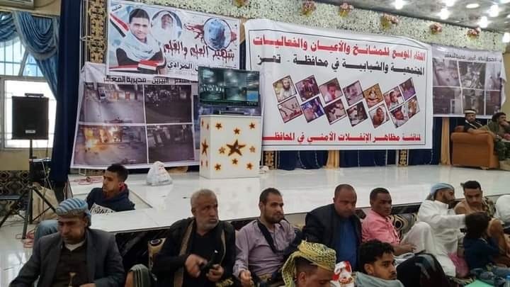 إستجابة للدعوة التي أطلقتها أسر ضحايا الانفلات الأمني يوم أمس الثلاثاء في محافظة تعز لحضور الاجتماع الموسع للمشائخ والوجهات الاجتماعية والفعاليات المجتمعية والشبابية .