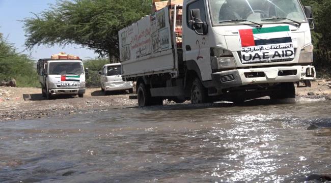 بدعم إماراتي: وصول 25 طنا من المساعدات الغذائية إلى سكان القری الناٸية غربي تعز