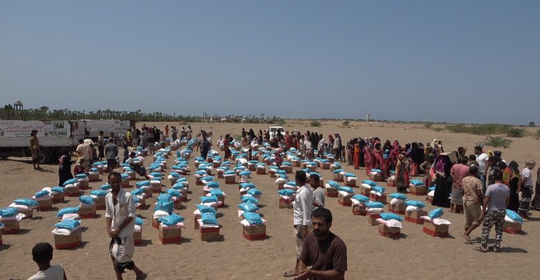 وزّعت هيئة الهلال الأحمر الإماراتي والسلطة المحلية المساعدات الغدائية من المرحلة الثانية للعام 2020م، لقاطني مخيم النزوح في قرية الوعرة بمديرية الخوخة الساحلية الذي يضم 350 أسرة نازحة من المديريات التى تسيطر