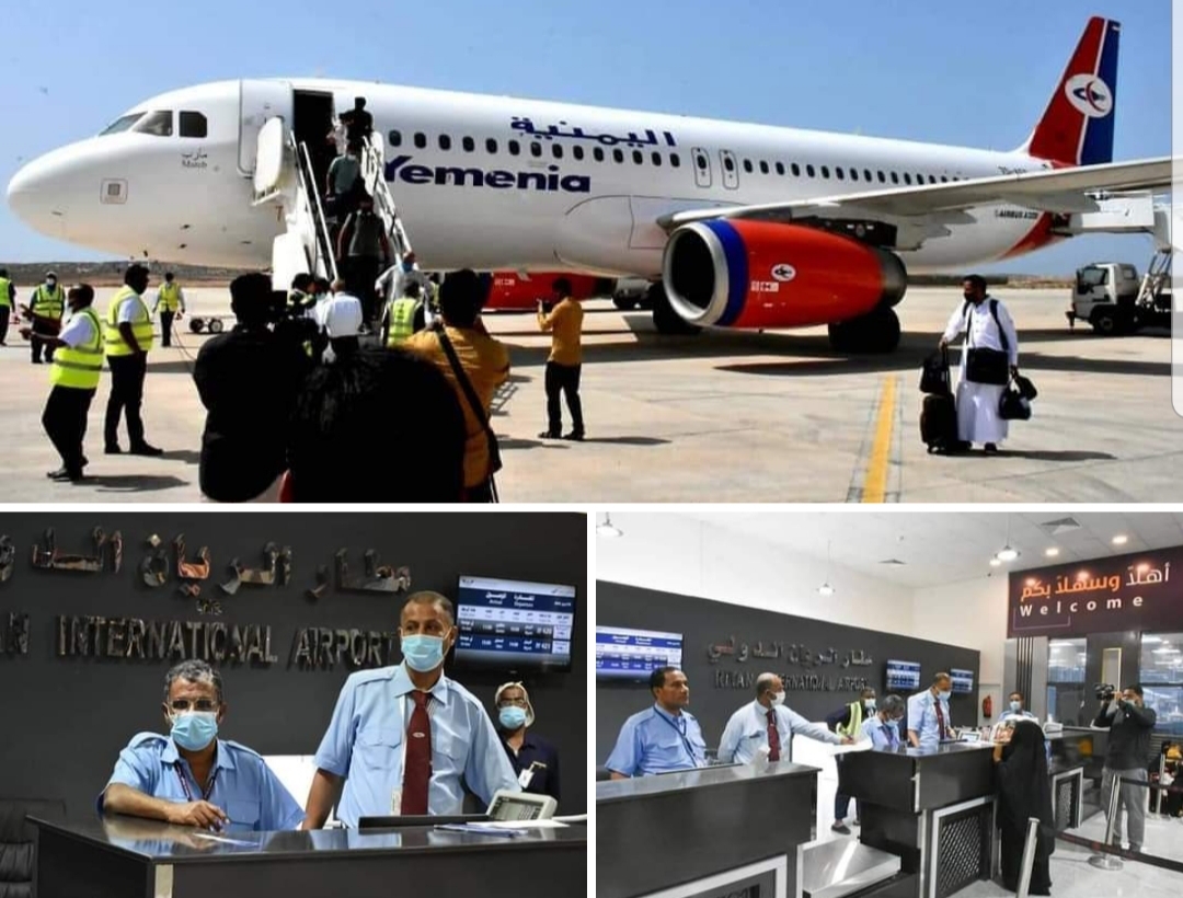 ودشن المطار اليوم عمله بوصول رحلتين داخليتين من مطار عدن وسقطرى ، بعد