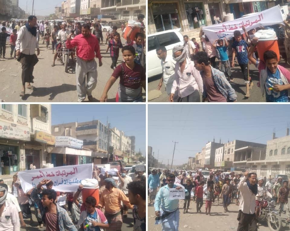 تظاهر المئات من المعلمين في مدينة الحبيلين ردفان صباح اليوم الاحد للمطالبة بسرعة صرف رواتبهم لشهر مارس الماضي.