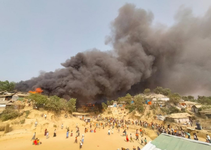 اندلع حريق ضخم في مخيم للاجئين الروهينجا في جنوب بنجلادش اليوم الاثنين.