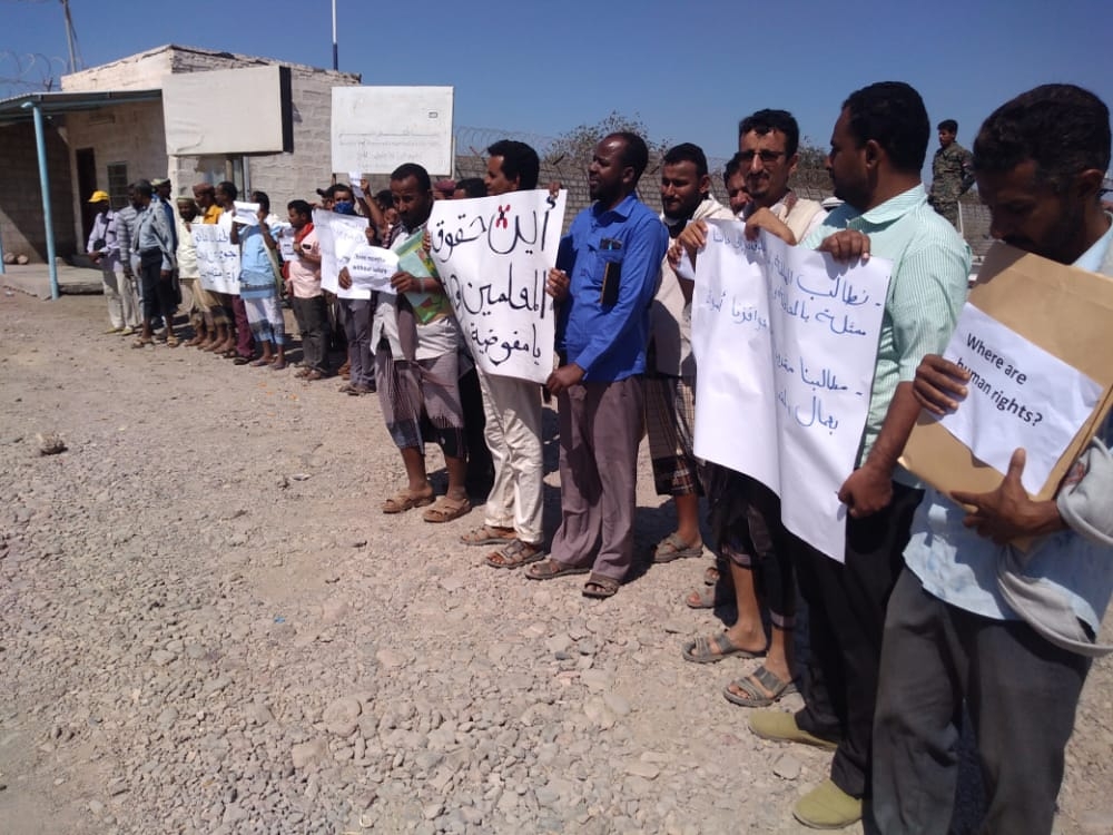 وطالب المحتجون مكتب المفوضية صرف رواتبهم المحتجزة منذ ثلاثة