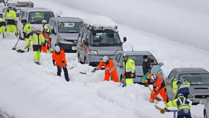 وبلغ ارتفاع طبقة الثلوج المتراكمة في مدينة توياما، أكثر من متر واحد، لأول مرة منذ 35