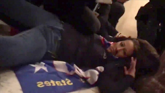 وأصيبت المرأة داخل الكونغرس، بعد أن اخترق حشد من أنصار الرئيس الأميركي المنتهية