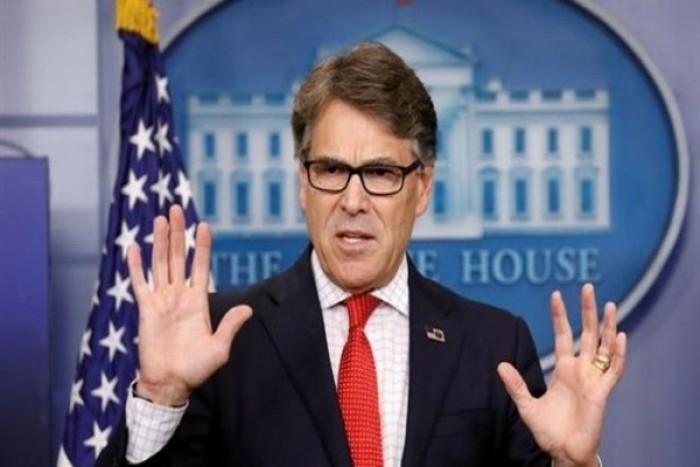 قال وزير الطاقة الأمريكي ريك بيري، اليوم الإثنين، إنه لا يعتزم الاستقالة حاليًا أو في الشهر القادم، لينفي تقريرًا ذكر أنه من المتوقع أن يقدم استقالته الشهر المقبل.وردًا على سؤال حول التقرير الذي نشره