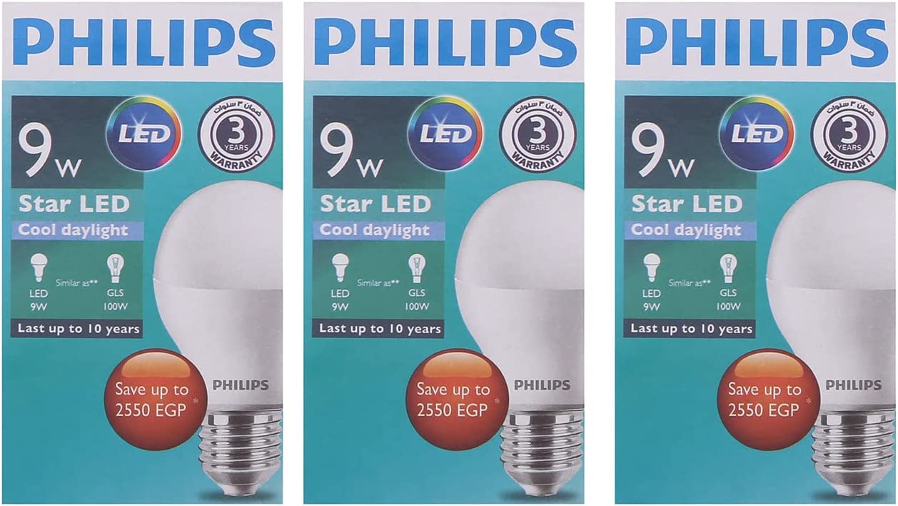مجموعة 3 قطع من لمبة ليد اي 6500 27 كلفن 9 وات من فيليبس